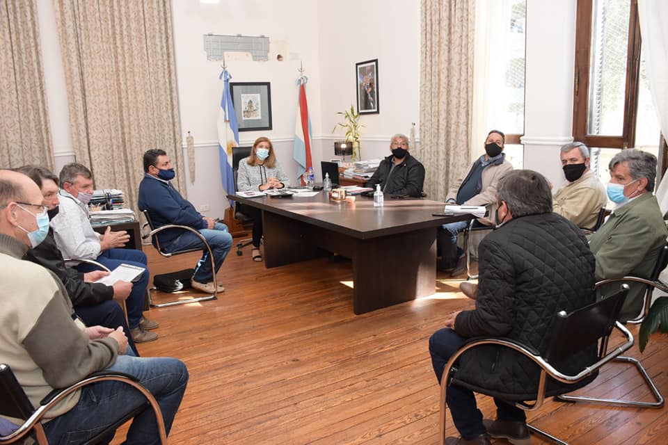 La Ministra de Gobierno y Justicia, Rosario Romero recibió en audiencia al Intendente de Cerrito, José Palacios, al presidente de la Comuna de Curtiembre, Ismael Cabaña, productores agropecuarios de Colonia San Martín y vecinos del camino junto a Eduardo Urrutia, Director de Conservación de la Dirección Provincial de Vialidad.