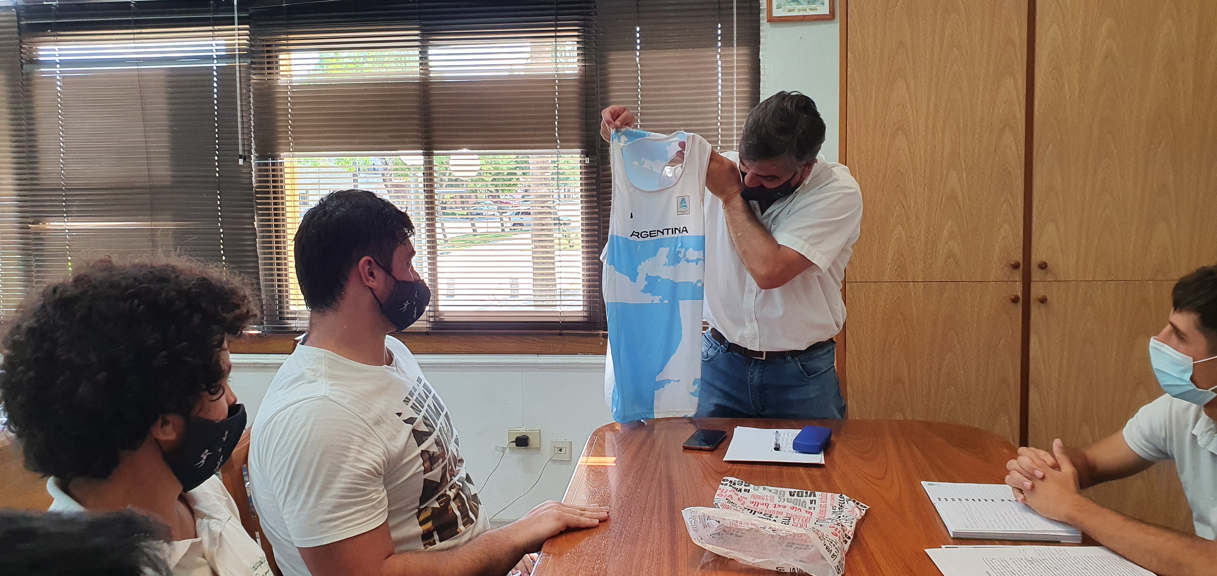 Al finalizar la reunión Nazareno le entregó al presidente municipal la camiseta de argentina que se utilizó oficialmente esta temporada en atletismo.
