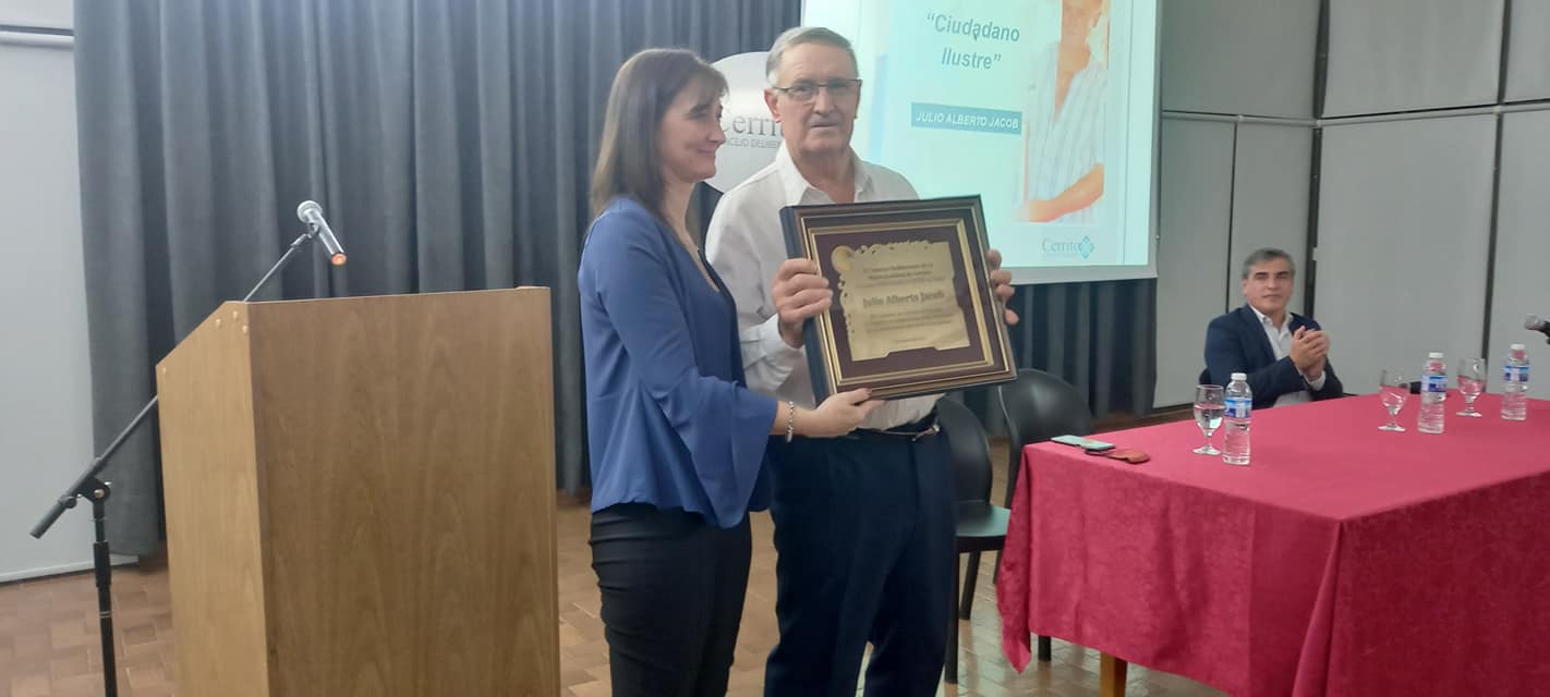 En el Salón Cultural de Plaza Las Colonias, se llevó a cabo el acto donde se realizó la entrega de la distinción de “Ciudadano Ilustre de Cerrito” al Sr. Julio Alberto Jacob.
