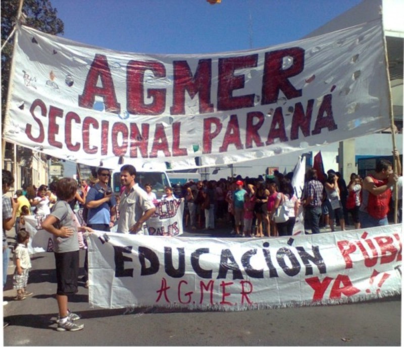 A la espera de la respuesta del gobierno como patronal a los pedidos de recomposición en blanco y de la devolución de los días descontados por las jornadas de lucha en el 2013, los docentes nucleados en AGMER Paraná, acompañados por otras seccionales y por la Central de Trabajadores de la Argentina (CTA) de la capital entrerriana, comenzarán este lunes, a las 21, un acampe en la explanada de Casa de Gobierno. El objetivo de la intervención pública es “estar en vigilia toda la noche visibilizando la necesidad de una recomposición salarial de carácter urgente”, dijo el gremialista. (Fuente: Aim)