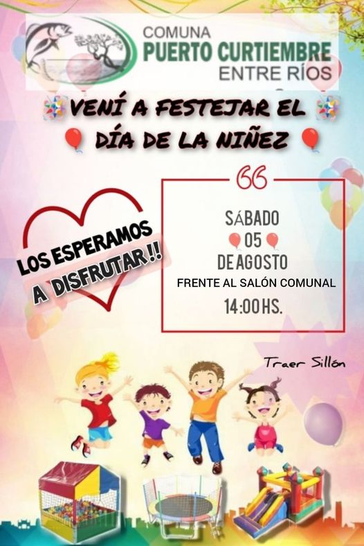 La Comuna de Puerto Curtiembre organiza para el Sábado 5 de Agosto, el festejo por el día de la Niñez.
