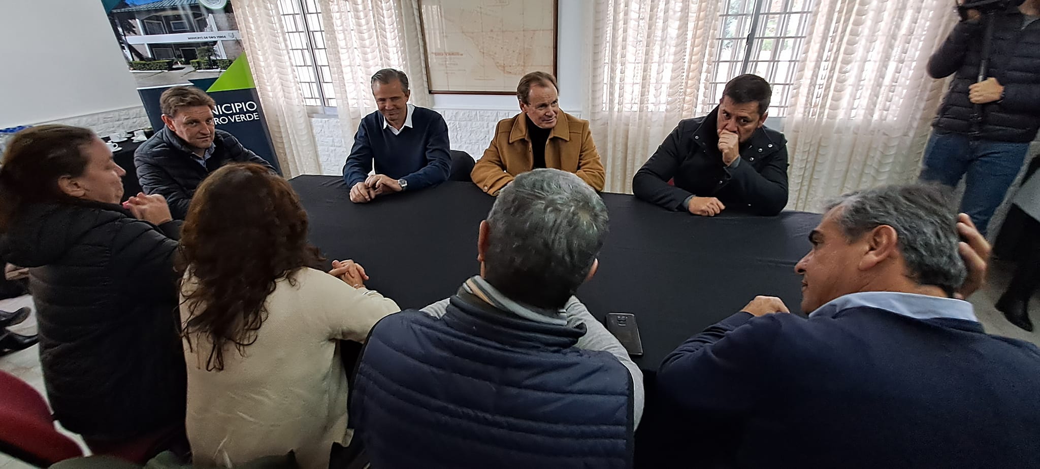 El intendente de Cerrito, José Palacios participó en el Municipio de Oro Verde de una reunión con el Gobernador Gustavo Bordet donde analizaron el ritmo de obras adjudicadas y otras que se están gestionando para la ciudad. Del encuentro con intendentes vecinalistas participó el intendente de Paraná y precandidato a gobernador por “Más para Entre Ríos”, Adán Bahl.