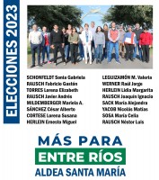 Schonfeldt añadió que “los vecinos nos manifiestan su malestar con las políticas económicas, cada uno tendrá que ver a quien vota, pero conoce la candidatura de Adán Bahl, nos pusimos muy contentos cuando esto se conoció porque siempre nos ayudó, y porque lo conocemos lo apoyamos, cada uno va a tener la libertad de votar. Vamos a ver cuál es la experiencia de la reunión del venidero martes y seguir evaluando. Tenemos que saber qué pretende el vecino, hicimos una plataforma, hay que aunar criterios, hay que ver el tema del agua que no está terminado, la provincia va a terminar el 30% de lo que falta. Hay mucho por seguir trabajando, el tema viviendas, seguir gestionando la unión de la Ruta 12 con la Ruta 10, tenemos que seguir insistiendo en eso y el desarrollo del turismo. Aldea Santa María no debe ser una isla, tenemos chicos muy talentosos, y también los concejales de Cerrito nos ayudan”, finalizó Schonfeldt. (Fuente: Debate Abierto)
