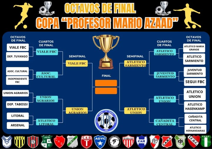 Este domingo 19 de octubre se jugaron los cuartos de final del Torneo Centenario donde está en juego la Copa «Profesor Mario Azaad» de las categorías mayores de la Liga de Futbol de Paraná Campaña y quedaron definidos los 4 mejores equipos del torneo.