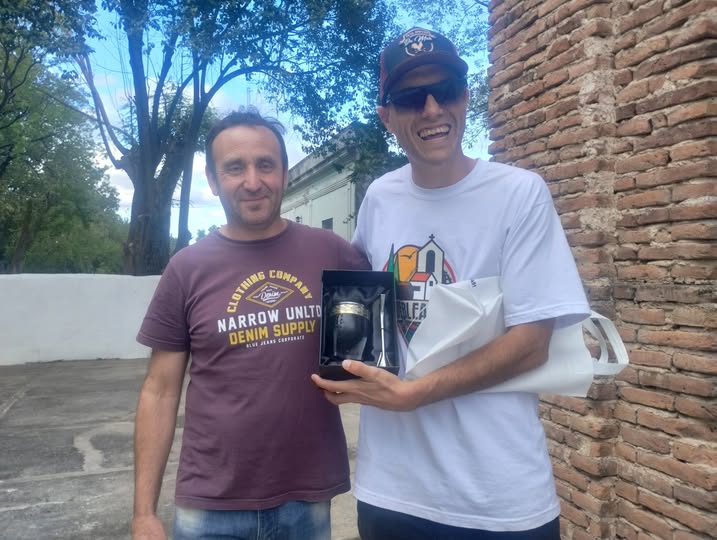 El lugar 98 fue el que ocupó la localidad de Pueblo Brugo y en ese marco el presidente Municipal Martín Ruiz recibió a Stoa y le obsequio un tradicional mate que sirvió además, para intercambiar sobre la situación de la ciudad, su pasado, presente y futuro. (Fuente: Municipalidad de Pueblo Brugo)