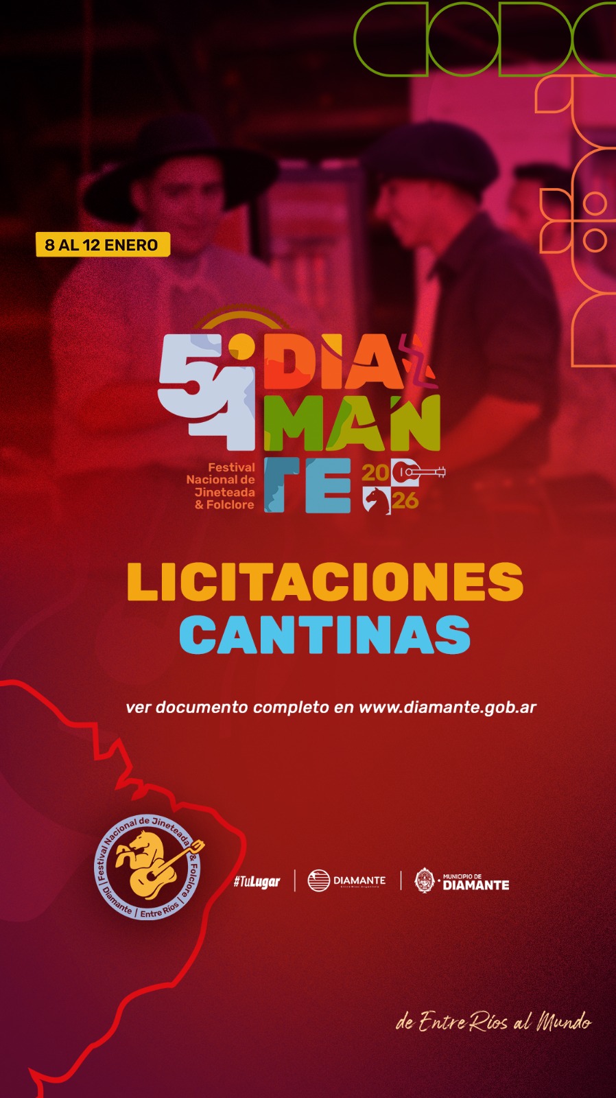 El Municipio de Diamante llama a Licitación Pública para adjudicar la explotación de negocios temporarios de distintos rubros, durante el desarrollo del 54º Festival Nacional de Jineteada y Folclore 2026. La apertura de ofertas será el 2 de diciembre, en el Palacio Municipal.