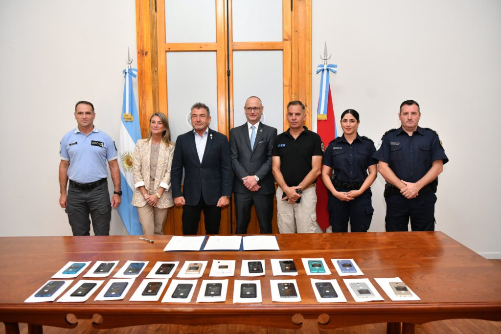 En el marco del Convenio de Colaboración Interinstitucional vigente entre el Ministerio de Seguridad y Justicia, la Policía de Entre Ríos y el Superior Tribunal de Justicia (STJ), la Policía provincial realizó hoy la entrega formal de veintiún (21) teléfonos celulares al Poder Judicial. Los dispositivos provienen de secuestros efectuados en distintas unidades penales del Servicio Penitenciario Provincial y serán destinados a la implementación y funcionamiento del sistema de “botón antipánico”, administrado por la División 911 y Video Vigilancia.