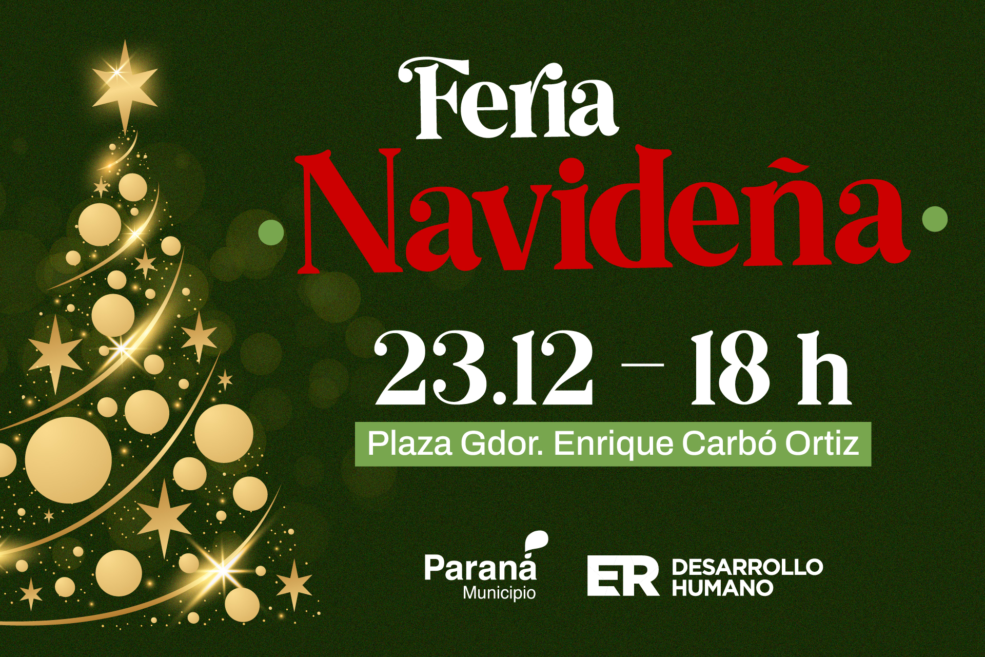 El próximo martes 23 de diciembre a partir de las 18 horas en la plaza Gobernador Enrique Carbó Ortiz de Paraná, se realizará la Feria Navideña, con la participación de más de 100 emprendimientos, música en vivo y espacio gastronómico.