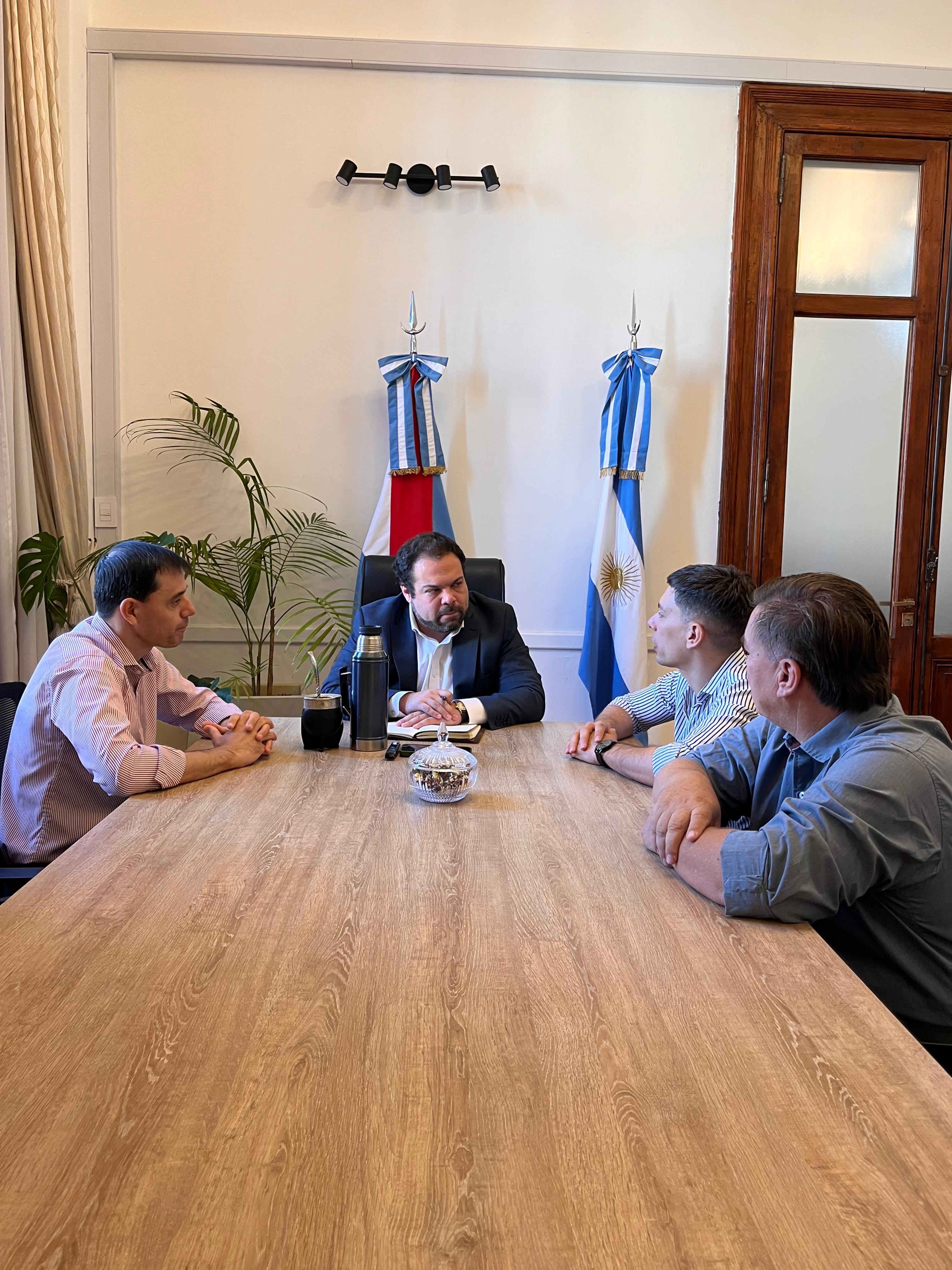 El intendente Lic. Ulises Tomassi, junto al rector del Instituto Técnico Superior de Cerrito, Gustavo Gómez, y el secretario académico de la institución, Lic. Martín Siebenhar, mantuvieron una reunión con el ministro de Gobierno y Trabajo de la provincia, Manuel Troncoso.
