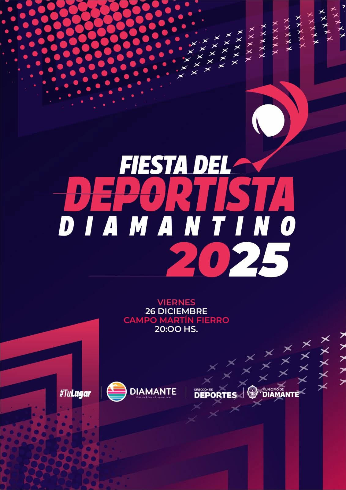 La Municipalidad de Diamante distinguirá a los deportistas diamantinos destacados del 2025. Será este viernes 26, a las 20 horas, en el Predio Campo Martín Fierro.