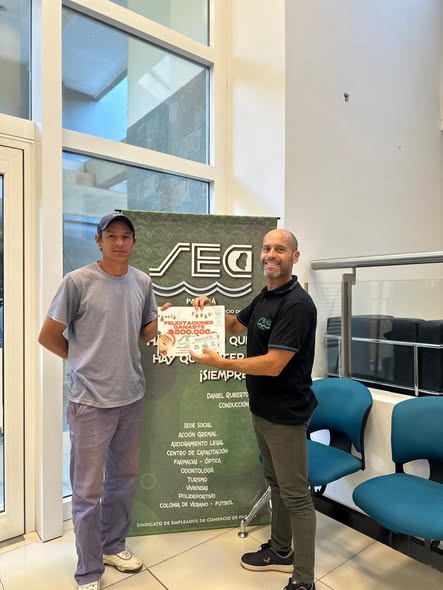 Y el otro premio que entregamos (hasta ahora) fue para Martín Montenegro (Afiliado N°17.839), empleado de Barbagelata Ingeniería, con el número 1275. (Fuente: Sindicato de Empleados de Comercio de Paraná)