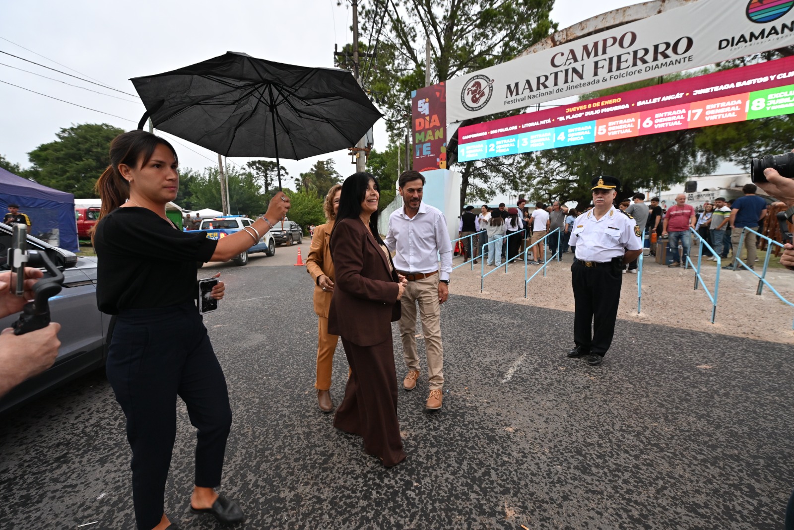 La Vicegobernadora de Entre Ríos, Alicia Aluani, junto al Presidente Municipal, Ezio Gieco, encabezaron este jueves 8 el acto inaugural de la Edición 2026 del Festival Nacional de Jineteada y Folclore de Diamante.