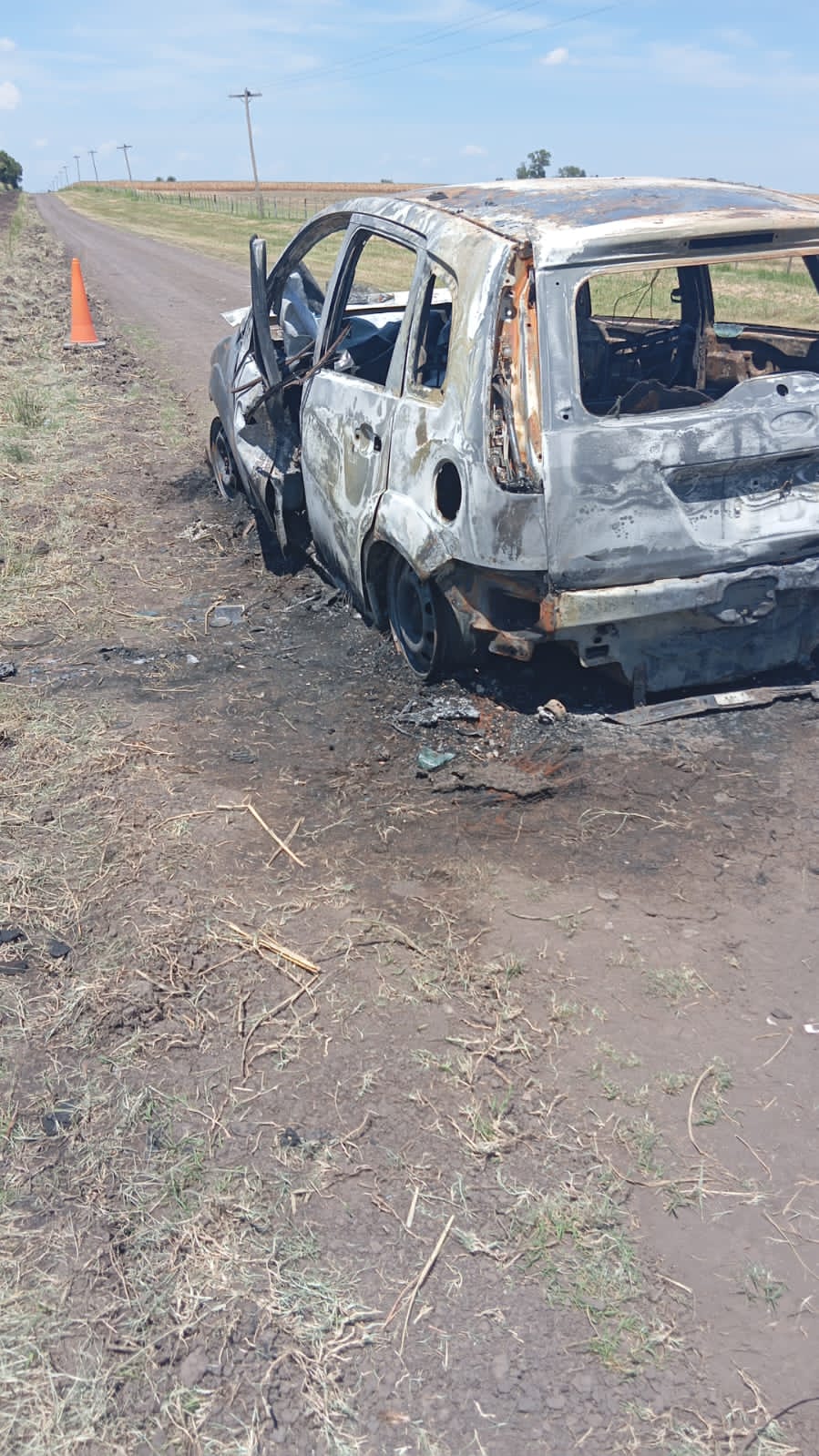 Conmoción en Cerrito: un auto calcinado y un cuerpo irreconocible en un camino rural