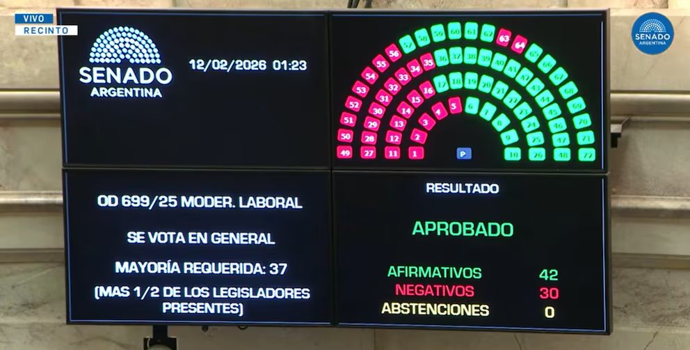 Con un total de 42 votos afirmativos, el Senado nacional aprobó la reforma laboral enviada por el Poder Ejecutivo.
