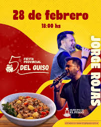 El Pingo vivirá este sábado la Fiesta Provincial del Guiso: se presentará Jorge Rojas