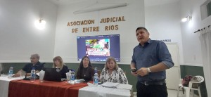 Luego tomo la palabra Jose Segura, Secretario General de AJER mencionado “el verdadero objetivo de Frigerio es desmantelar el 82 % movil, rompiendo el lazo solidario entre trabajadores activos y pasivos al desenganchar los aumentos salariales”; Claudia Valori, Vocal en la Caja de Jubilaciones y Pensiones representando a la Federacion de Jubilados de Entre Rios manifesto que “estamos frente a una estafa donde nos engañan culpando al trabajador estatal del deficit, cuando cada empleado y empleada estatal y trabajo y aporto durante 30 años para acceder a una jubilacion, Frigerio no busca solucionar el deficit, lo agrava con aumentos no remunerados.”