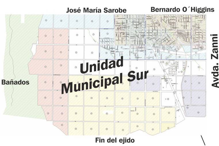 La nueva Unidad Sur estará conformada por dos sectores que pertenecían a las Unidades 2 y 3. Los límites de la misma son al norte calle Sarobe y O’Higgins; al este, Zanni; al oeste zona de bañados hasta el río y al sur hasta fin del ejido.