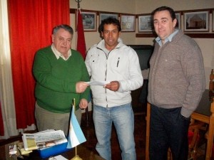 El Presidente de los Bomberos Voluntarios de la Ciudad de Viale, Sr. Daniel Enrique, recibió de manos del Intendente Estelio Urchueguia y el Secretario de Gobierno Dr. Eduardo Ferreyra un cheque por la suma de $41.000,00 proveniente de un adicional voluntario que los vecinos abonan junto a una de las tasas municipales.