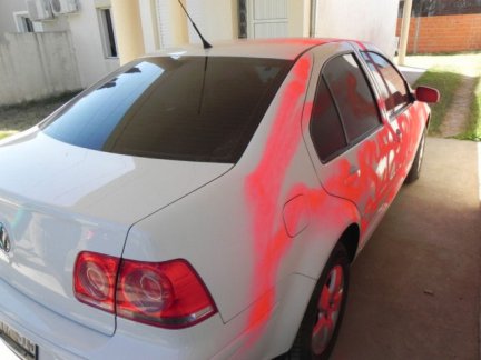 Desconocidos lanzaron pintura flúo sobre el Volkswagen Bora blanco del Juez de Paz de Viale. El funcionario había adquirido el rodado recientemente. Se investiga si se trató de un acto de vandalismo o una intimidación el funcionario.