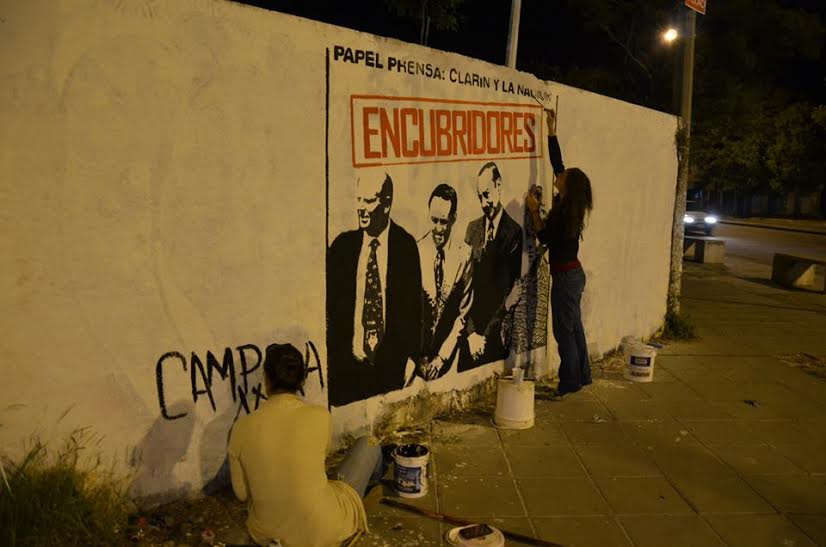 Militantes de la Secretaría de Cultura de La Cámpora en Paraná junto compañeros de otras secretarías, trabajaron en la realización del mural “Encubridores”, que es una acción simultánea en todo el país, y se encuentra enmarcado en las actividades por el mes de la Memoria. De esta manera, a través del arte, se busca exigir a la justicia celeridad en la causa “Papel Prensa”, en la que se encuentran acusados los propietarios y directivos de los diarios La Nación y Clarín.