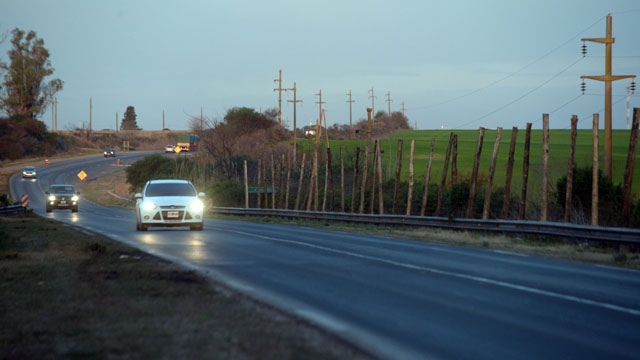 La ruta, a la altura del arroyo Las Tunas –límite natural entre Paraná y Colonia Avellaneda—estaba ocupada por obreros que trabajaban a ambos lados de la cinta asfáltica. Colocaban postes de madera y alambrado, y sobre eso, listones de madera negra, a modo de cobertizo.