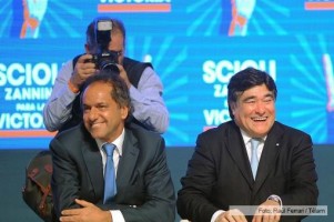 Acompañado por su compañero de fórmula, Carlos Zannini, Scioli habló de “triunfo” y de “demostración de confianza” del electorado, pero su alocución estuvo cargada de promesas de campaña apuntando al que parece ser un inevitable ballotage con el candidato presidencial del frente opositor Cambiemos.