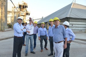 Sergio Urribarri y Gustavo Bordet visitaron este martes la planta de harina de soja, pellets y aceite Entre Ríos Crushing de Gualeguaychú que funciona al ciento por ciento de su capacidad produciendo 1000 toneladas diarias que se exportan a países latinoamericanos y europeos. El gobernador electo ratificó la política de promoción industrial y la conformación de una mesa público privada para definir la política portuaria de la provincia.