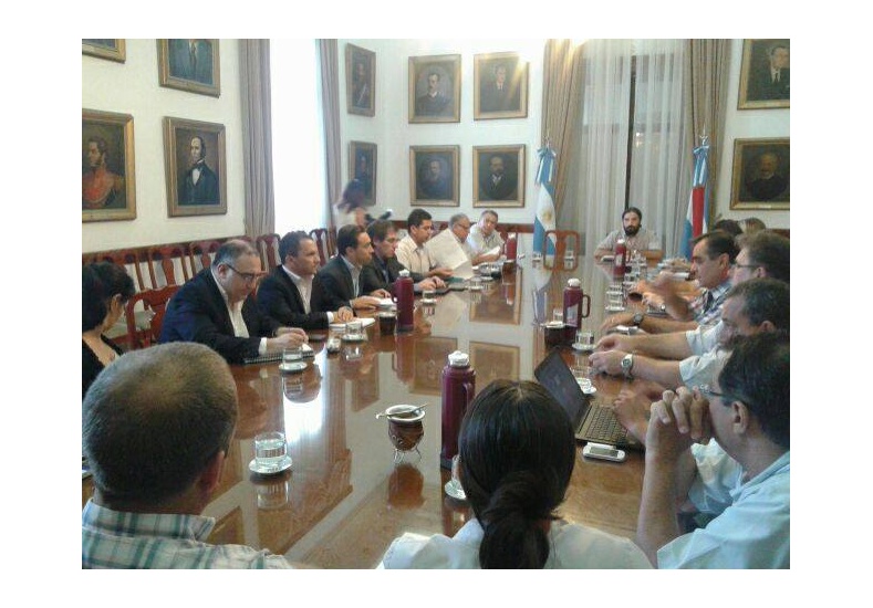 El ministro de Gobierno, Mauro Urribarri, el de Economía Hugo Ballay y el presidente del CGE, José Luis Panozzo, recibieron a los cuatros gremios docentes de la provincia. Fue un encuentro largo que permitió el repaso de varios temas, entre ellos el salarial.