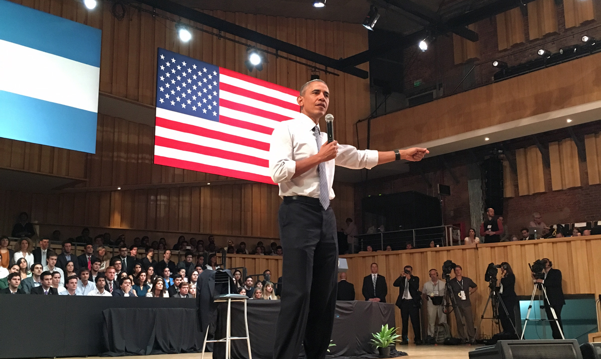 Una vez comenzado el intercambio de los jóvenes argentinos con el Presidente Obama, éste expresó que sabe de la importancia de escuchar a los jóvenes y por esa razón planificó este encuentro. Pero además dijo que “estoy aquí porque somos naciones vecinas y quiero ampliar los lazos con este país. En este sentido, me complacen las acciones de Mauricio Macri para gestar economías influyentes y demostrar confianza al resto del mundo”.