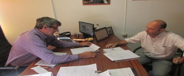 El Intendente Juan Carlos Kloss , recibió en su despacho al Técnico de la Dirección de Hidráulica de Entre Ríos, Rubén Cogno junto al equipo de Obras Publicas José Luna, Luis Pasutti y el Ing, Rubén Rezett , para firmar el acta de inicio de la Obra de Saneamiento , desagües pluviales , cordones cunetas y badenes para Hasenkamp.