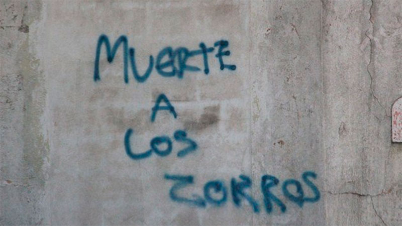 Tras controles policiales y municipales, en una esquina apareció un grafiti con la leyenda: “Muerte a los zorros”. Se desconoce si se trata de un mensaje intimidatorio o una picardía juvenil. Autoridades mostraron preocupación por el hecho.
