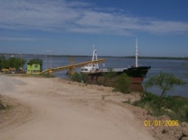 El barco de bandera paraguaya Arapoty (primavera en guaraní) ancló el miércoles por la mañana y luego de las operaciones de rutina en horas del medio día comenzaron las tareas propias de carga del mineral.