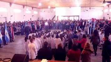 En la mañana de este martes en el Salón Parroquial, con una importante presencia de público, se llevó a cabo el acto en conmemoración por el 197° aniversario del paso a la inmortalidad del General Manuel Belgrano oportunidad en que 84 alumnos juraron lealtad a la Bandera Nacional.