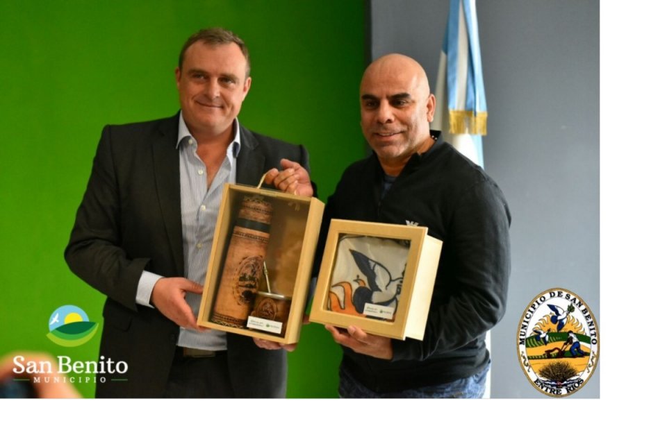 El ídolo boquense visitó San Benito el 7 de septiembre de 2017, para firmar con el gobierno del intendente Exequiel Donda (Cambiemos) un convenio de colaboración recíproca en el marco del “Programa campeones del futuro” perteneciente a la fundación Pasión Cinco, presidida por el exfutbolista. Fue en el marco de un plan de mejoramiento de las instalaciones del complejo de piletas Crisólogo Vieytes, y del polideportivo Alejandro Vera, de titularidad de la municipalidad de San Benito, con gestiones conjuntas del gobierno nacional.
