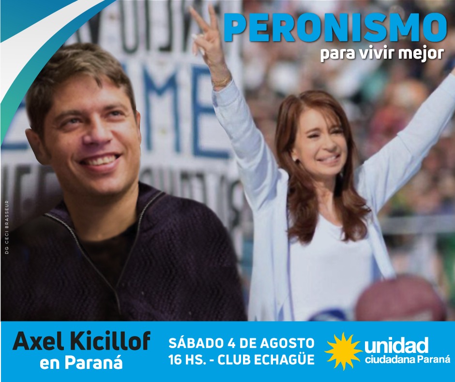 Kicillof encabezará el 4 de agosto un acto en el Club Echagüe de Paraná