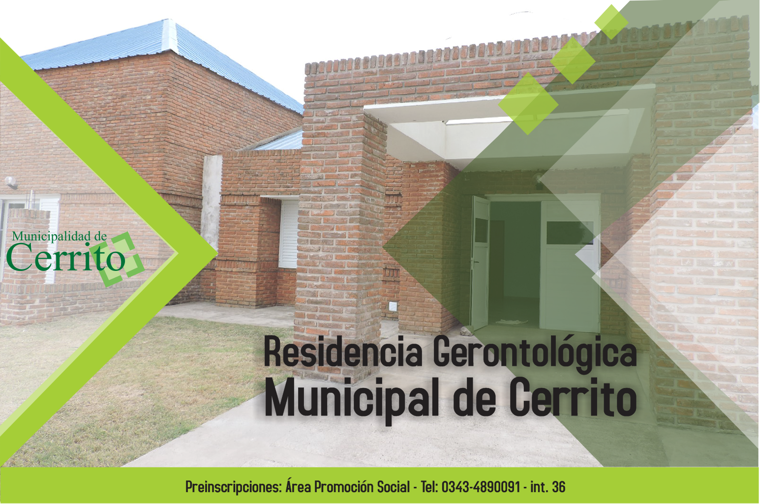 Para cumplimentar la inscripción, el adulto mayor interesado en ingresar a la entidad deberá presentarse personalmente junto a un representante familiar o referente de contacto, en el Área Promoción Social de la Municipalidad de Cerrito, de lunes a viernes de 7 a 13hs o comunicarse telefónicamente al 0343-4890091/ interno 36. (Fuente: Municipalidad de Cerrito)