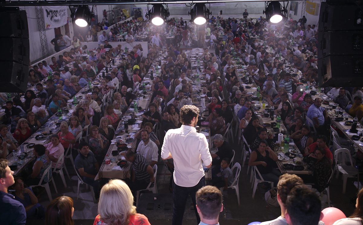 “¡Emanuel y a todo el equipo! a todos los que se están reuniendo en Paraná para terminar el año, que tengan un feliz fin de año y que el 19, que es un año muy importante para nosotros, que podamos trabajar juntos”, djo De Ángeli desde el patio de las palmeras en la Casa Rosada, en un video enviado para el encuentro que sumó a casi 1000 personas.