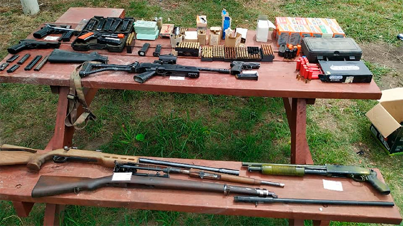 El personal policial llegó al lugar donde notificó del procedimiento a un hombre de 40 años que vive en la casa allanada. Al efectuar la requisa del domicilio encontraron un verdadero arsenal compuesto por una pistola semi automática, Bersa, modelo Thunder 40 Ultra Compact Pro, Calibre .40; Smith & Wesson automática; un fusil de repetición DWM, Mauser Mod Argentino 1009, calibre 7,65; pistolas semiautomáticas calibre .45, PLG, Norinco; una escopeta de repetición marca Maverick Modelo 88, Cal. 12; una carabina Semi Automática, Marca Bataan, Modelo Super 54, Calibre .22 PLG largo Rifle, con su respectivo cargador; siete granadas de Gas; un cartucho de fumigación; 9 cartuchos de corto alcance de Gas.