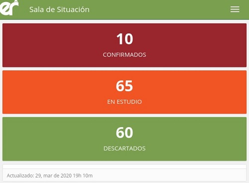 De acuerdo a los datos reportados al 29 de marzo a las 19.00 horas por el área de Vigilancia Epidemiológica del Ministerio de Salud, no se han registrado nuevos casos de Coronavirus en la provincia, por lo tanto se mantienen los 10 casos confirmados.