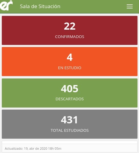 De este modo, nuestra provincia se mantiene en 22 casos confirmados; mientras que 4 permanecen en estudio y ya se han descartado 405 casos sospechosos. Finalmente, se informó que en total se han analizado 431 casos.