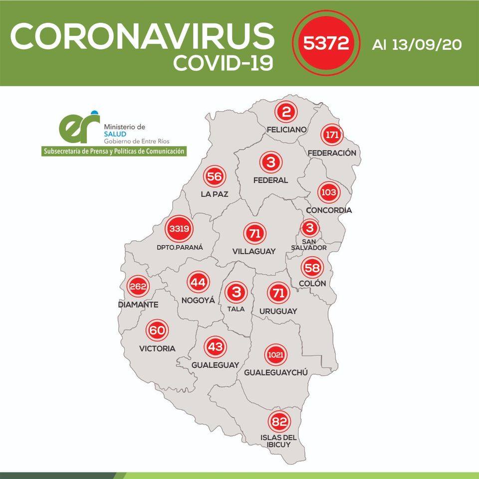 Este domingo se registraron 160 nuevos casos de coronavirus en Entre Ríos
