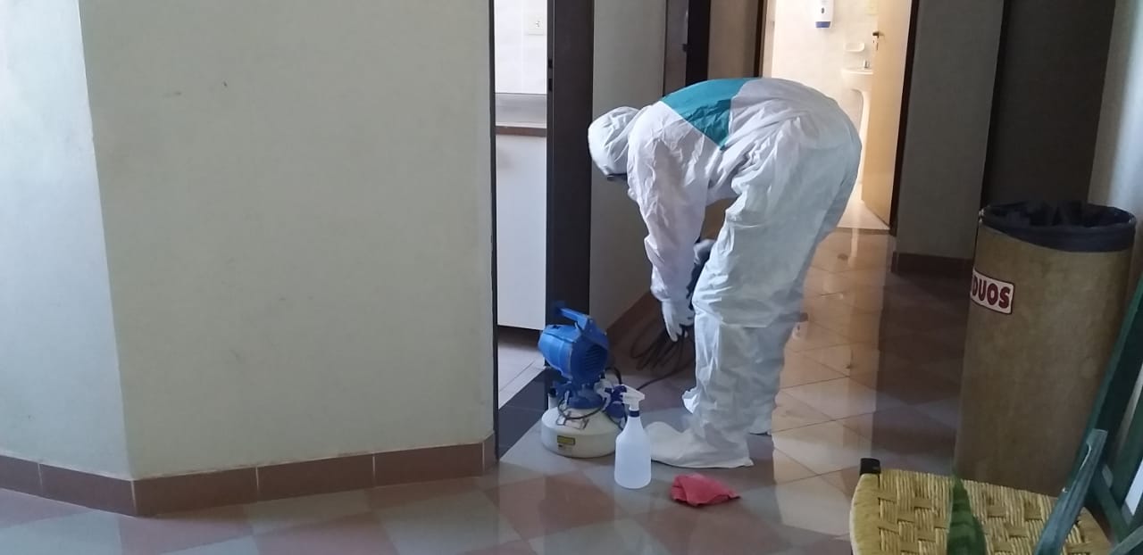 Durante esta jornada, se lleva adelante la desinfección del edificio Municipal, tal como estaba previsto, a manera de prevención.
