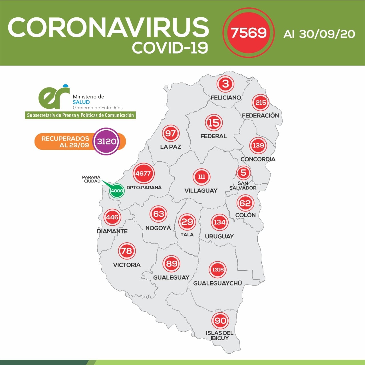 A partir de los datos reportados al 30 de Septiembre de 2020 por el área de Vigilancia Epidemiológica del Ministerio de Salud, en Entre Ríos se han sumado 145 casos de Coronavirus.