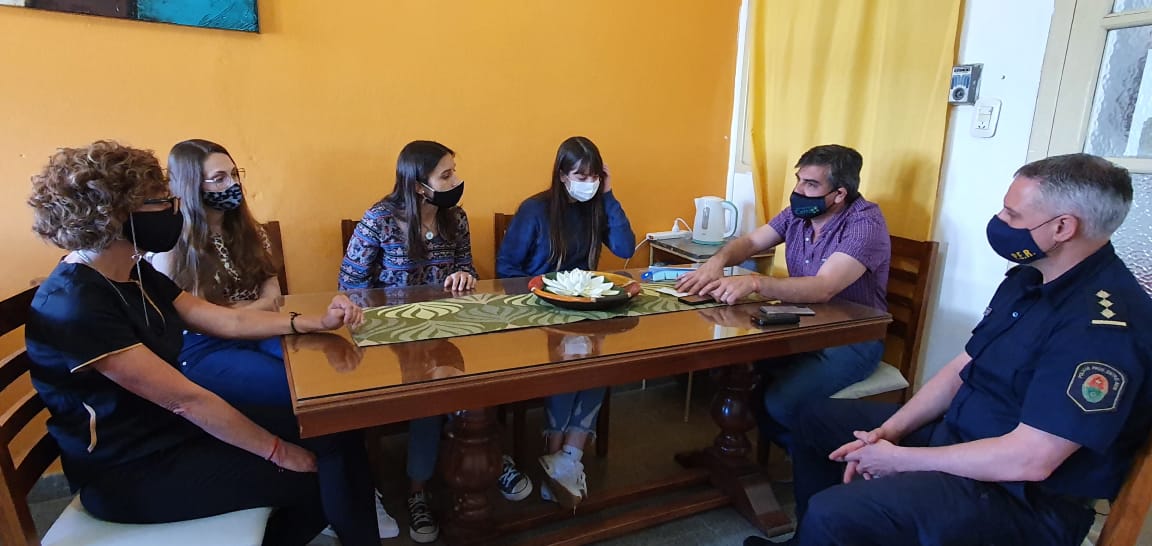 El Intendente José Palacios, acompañado por el Jefe de Comisaría Cerrito, Diego Wasinger, se reunió con la Directora del Hospital “Dr. José María Miranda”, Claudia Picconi y con estudiantes avanzadas de la carrera de medicina para continuar con el trabajo conjunto que se viene desarrollando en este contexto de Pandemia.