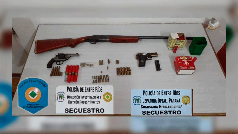 “Allanamos dos viviendas y se pidió la requisa de un vehículo, marca fiat, modelo punto, de color blanco. Se procedió al secuestro de una gran cantidad de armas de fuego y cartuchería”, expresó Walter Giordano de la División Robos y Hurtos.
