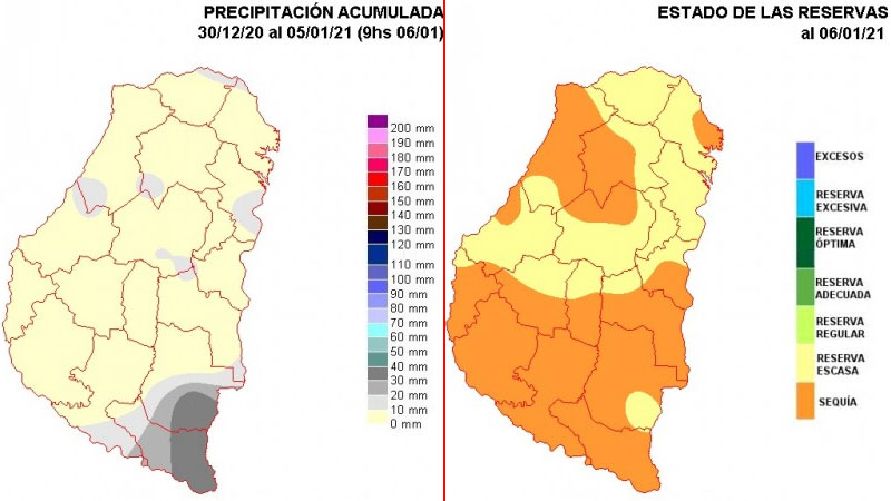 “Entendemos que prevalece una continuidad del comportamiento atmosférico observado en diciembre. Las precipitaciones tenderán a mostrar un nivel de provisión insuficiente. Es un mes donde no se observarían correcciones destacados en los niveles de humedad, principalmente en las zonas agrícolas ubicadas del centro para el sur. Por la recurrencia que han tenido las lluvias de mayor importancia durante los meses previos, los departamentos del norte pueden tener un tránsito más favorable durante el resto del verano”, dice el informe de la Bolsa de Cereales de Entre Ríos.